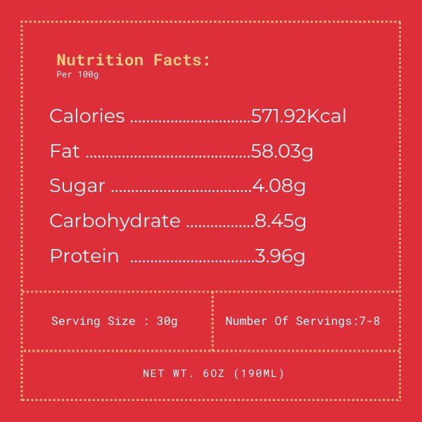 Our products are made in small batches without any preservatives. They are sold in 200ml reusable/recyclable glass jars.
