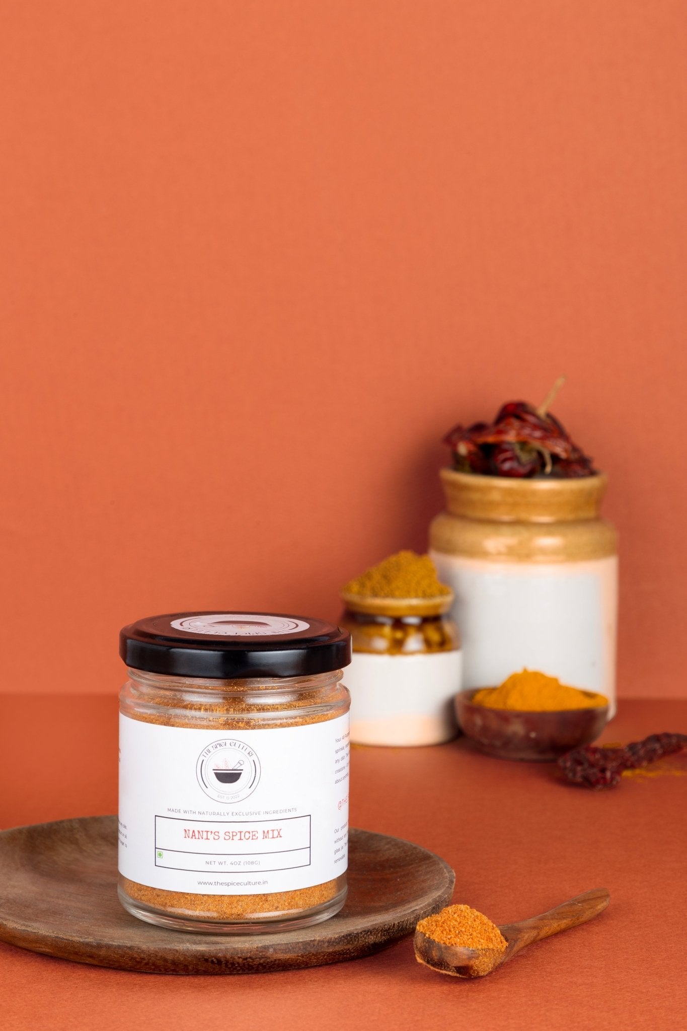 Introducing Nani's Spice Mix—a proprietary 'All Purpose' blend designed to infuse every bite with an extra burst of flavor. This magical masala works wonders on virtually anything, transforming your dishes into a culinary delight with its unique and versatile blend of spices.
