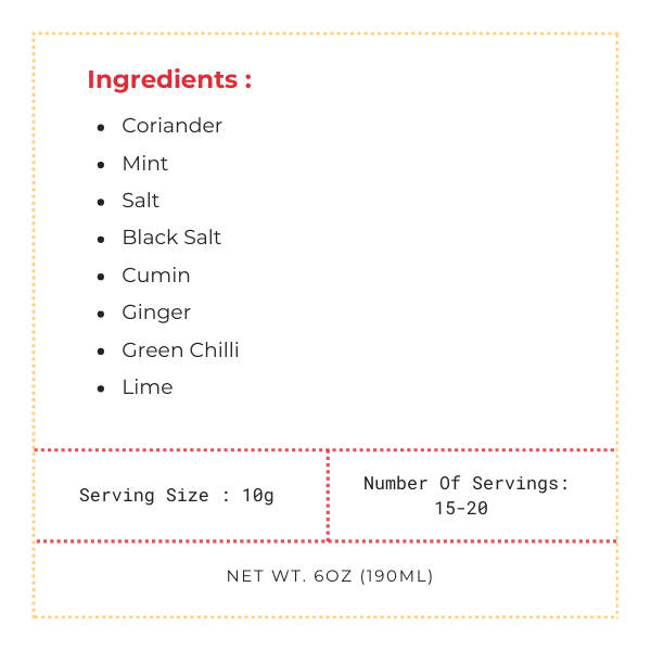 Savor the bold kick of our Theekha Chutney, a symphony of fresh mint and coriander that elevates every dish. Perfect as a zesty dip for tikkas or paired with hot-off-the-tawa paranthas for a classic combo. Add to taste, as its fiery delight varies from person to person.